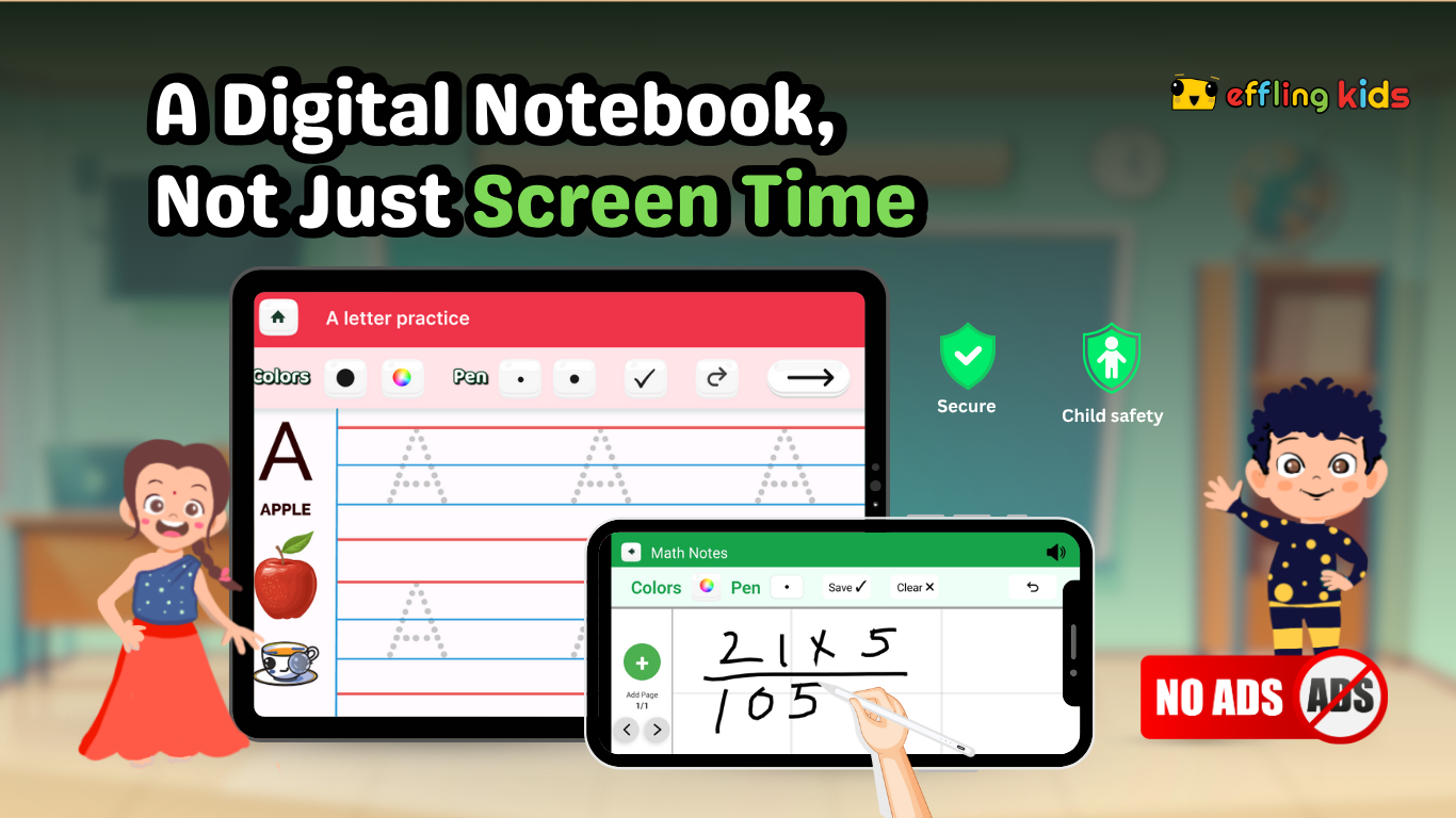 The software’s interactive writing activities also allow children to practice spelling, grammar, and sentence structure in a fun and engaging way. This well-rounded approach to language learning sets Effling apart from other educational apps in the market. Effling includes engaging writing exercises that help children practice foundational skills in Hindi, English, Math, and Art. These activities are designed to be both educational and entertaining, encouraging consistent learning habits.