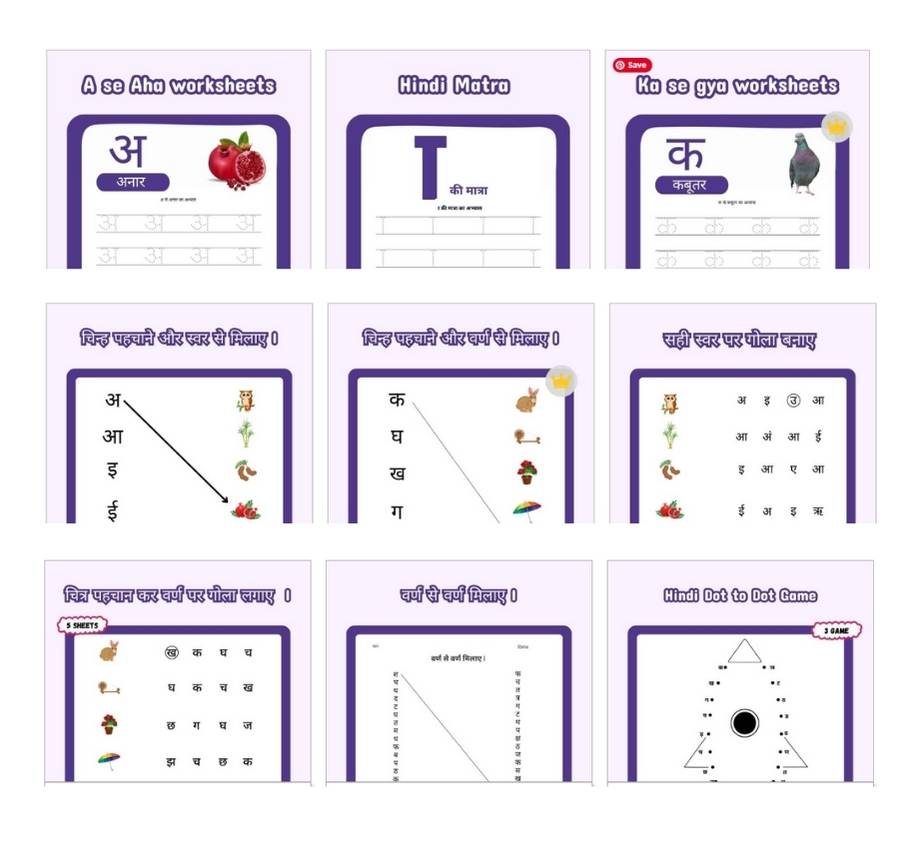 Help your child master the basics of Hindi writing and pronunciation with these downloadable worksheets: