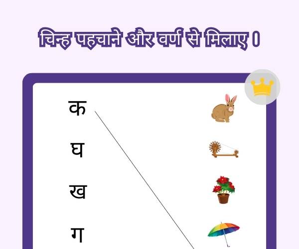 Match the given pictures with the correct वर्ण from क to ज्ञ. Children will learn Hindi consonants step by step, making alphabet practice easy, visual, and engaging through matching and recognition.