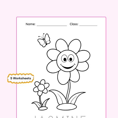 In this activity, children trace and color different flower shapes. The worksheet encourages creativity while also helping improve fine motor skills. Teachers often use drawing and coloring activities to help young learners develop hand coordination. Parents can also use this worksheet during quiet learning time at home. As children trace and color the flowers, they practice holding pencils correctly and gain more control over their drawing and writing movements.