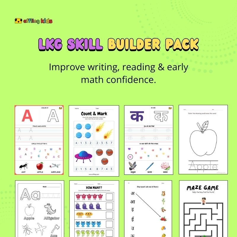 At the LKG stage, children are ready to move from basic tracing to understanding letters, sounds, and numbers. This bundle is designed to support that transition.